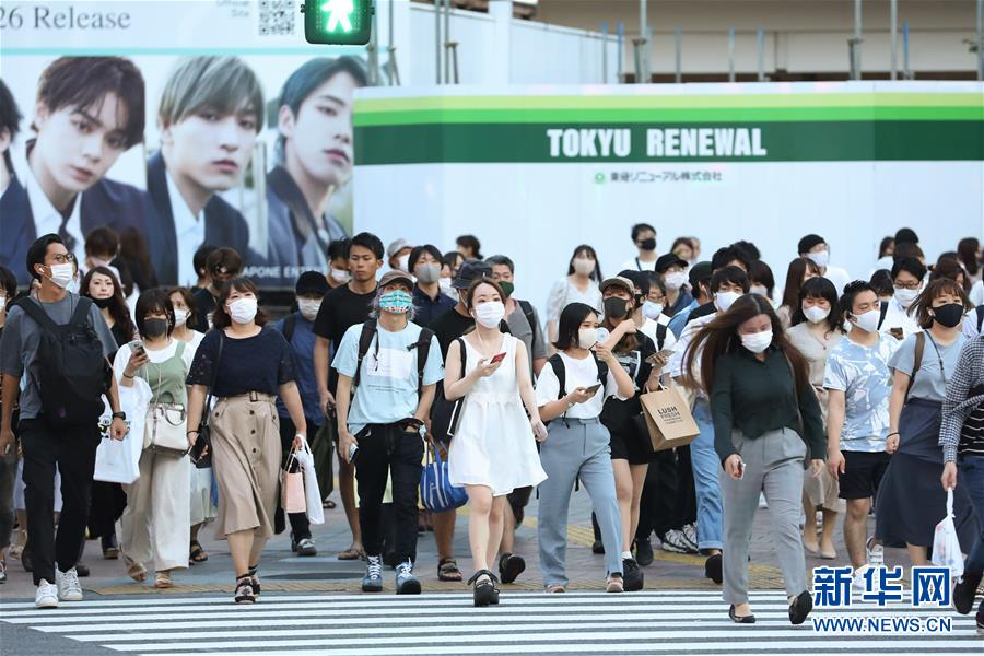 8月20日,在日本东京,行人戴口罩走在涩谷街头。 据日本广播协会(NHK)电视台统计,截至20日20时30分(北京时间19时30分),日本当日新增新冠确诊病例1178例,累计确诊超过6万例,达60026例;新增死亡病例10例,连续5天达两位数,累计死亡1159例。 新华社记者 杜潇逸 摄