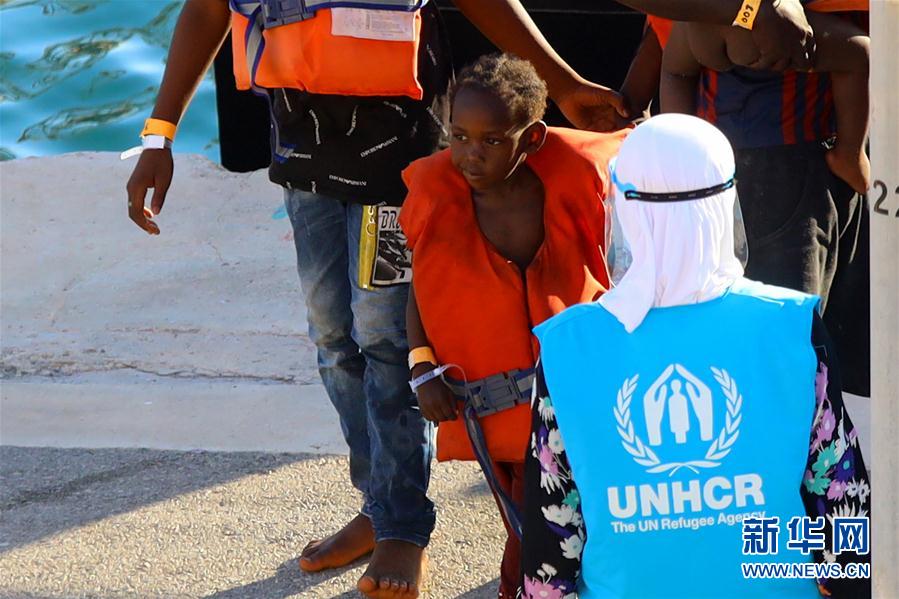 8月20日,一名联合国难民署的工作人员在马耳他森格莱阿码头迎接上岸的一名获救儿童。 新华社发(乔纳森·博格摄)