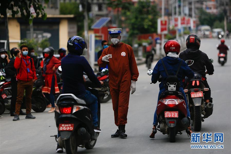 8月20日,在尼泊尔首都加德满都街头,警察检查行驶的车辆。 近日,尼泊尔新冠疫情出现反弹,单日新增病例破千。尼泊尔政府采取多项措施加强疫情防控。 新华社发(苏拉韦·什雷斯塔摄)
