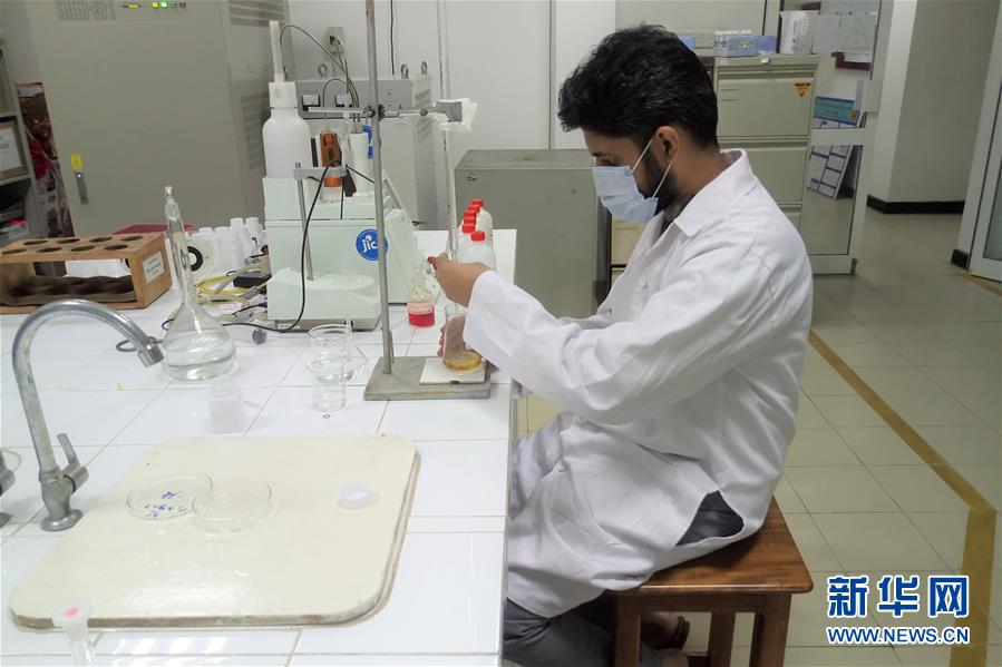 7月20日,斯里兰卡学生因迪卡在斯里兰卡康提的佩拉德尼亚大学环境实验室测量地下水样品的碱度。新华社发(中科院中斯水中心项目组供图)