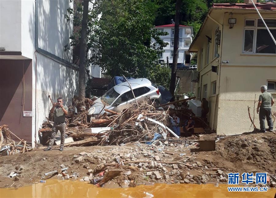 这是8月23日在土耳其吉雷松省一处城镇拍摄的洪灾过后的景象。 土耳其内政部23日表示,土耳其北部吉雷松省22日晚发生洪灾,截至目前,已造成至少6人死亡,另有10多人失踪。 新华社发