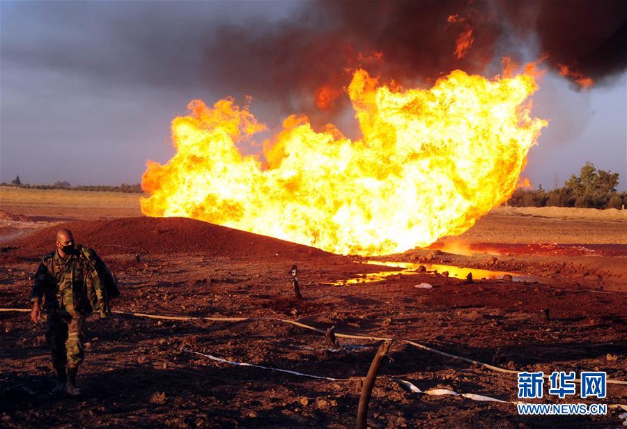 这是8月24日在叙利亚首都大马士革郊外拍摄的天然气管道爆炸事故现场。 据叙利亚通讯社报道,24日黎明时分,叙首都大马士革东北部杜迈尔镇和阿德拉镇之间一处天然气管道发生爆炸,引发大火并导致全国大范围停电。爆炸发生后,工作人员立即赶往现场灭火,并对受损管道进行维修。截至发稿时,大火已被扑灭,包括大马士革在内的全国部分地区已恢复供电。 新华社发