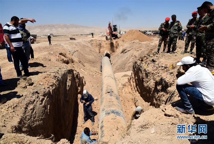 8月24日,工作人员在叙利亚首都大马士革郊外的天然气管道爆炸事故现场修补受损的管道。 据叙利亚通讯社报道,24日黎明时分,叙首都大马士革东北部杜迈尔镇和阿德拉镇之间一处天然气管道发生爆炸,引发大火并导致全国大范围停电。爆炸发生后,工作人员立即赶往现场灭火,并对受损管道进行维修。截至发稿时,大火已被扑灭,包括大马士革在内的全国部分地区已恢复供电。 新华社发(阿马尔·萨法尔贾拉尼摄)