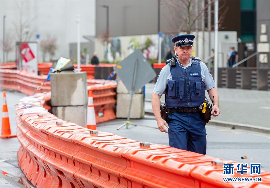 8月24日,新西兰警方在克赖斯特彻奇法院门前警戒。 新西兰克赖斯特彻奇恐袭案嫌疑人、澳大利亚籍29岁男子布伦顿·塔兰特24日起在克赖斯特彻奇高等法院出庭受审,预计法院将在数日内进行公开宣判。 新华社发(朱其平摄)