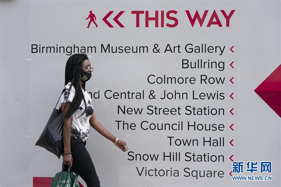 8月24日,一名女子戴口罩在英国伯明翰市中心行走。 据当地媒体报道,近日,伯明翰的新冠确诊病例有所增加。 新华社发(乔恩·休珀摄)