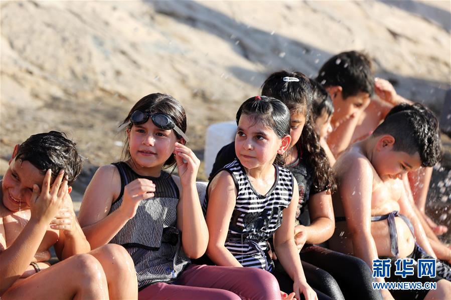 8月24日,儿童们在伊拉克巴格达底格里斯河学习游泳。 新华社发(哈利勒·达伍德摄)