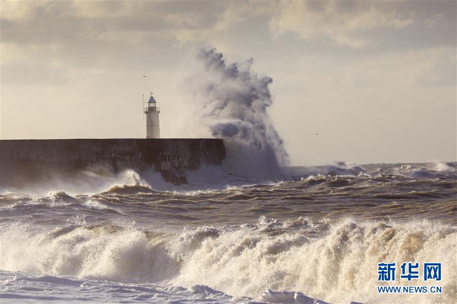 8月26日清晨,在英国纽黑文,海浪拍打港口的堤岸。 近日,风暴“弗朗西斯”给英国多地带来强降雨和强风天气。 新华社发(蒂姆·爱尔兰摄)