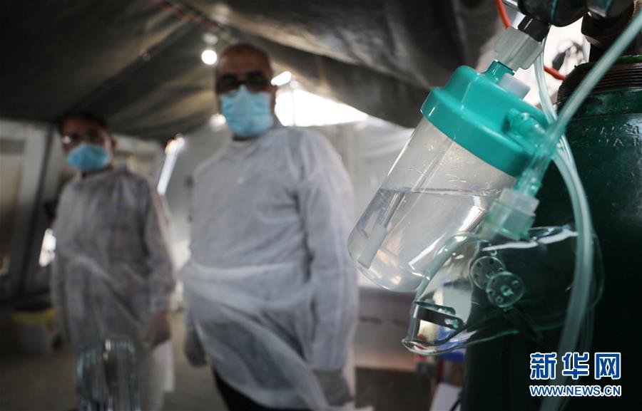 8月26日,在加沙地带汗尤尼斯,医务人员在收治新冠患者的临时医院内工作。 巴勒斯坦卫生部26日通报,加沙地带一名61岁男子因感染新冠病毒死亡,这是加沙卫生部门本周早些时候检测到新冠病毒开始在社区传播以来的首例死亡病例。加沙地带一座难民营24日出现4例新冠确诊病例,是这一地区首次出现社区传播病例。 新华社发(亚西尔摄)