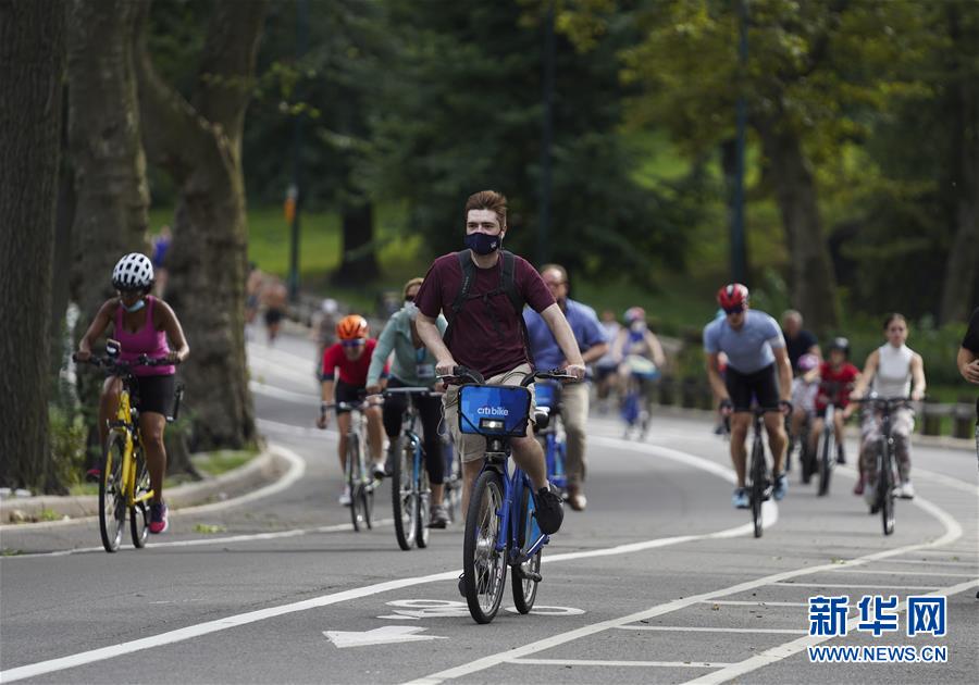8月26日,人们在美国纽约中央公园骑自行车。 美国约翰斯·霍普金斯大学26日发布的新冠疫情最新统计数据显示,美国累计确诊病例已超过580万例。数据显示,截至美国东部时间26日14时28分(北京时间27日2时28分),美国累计确诊病例5800472例,累计死亡病例179150例。 新华社记者 王迎 摄