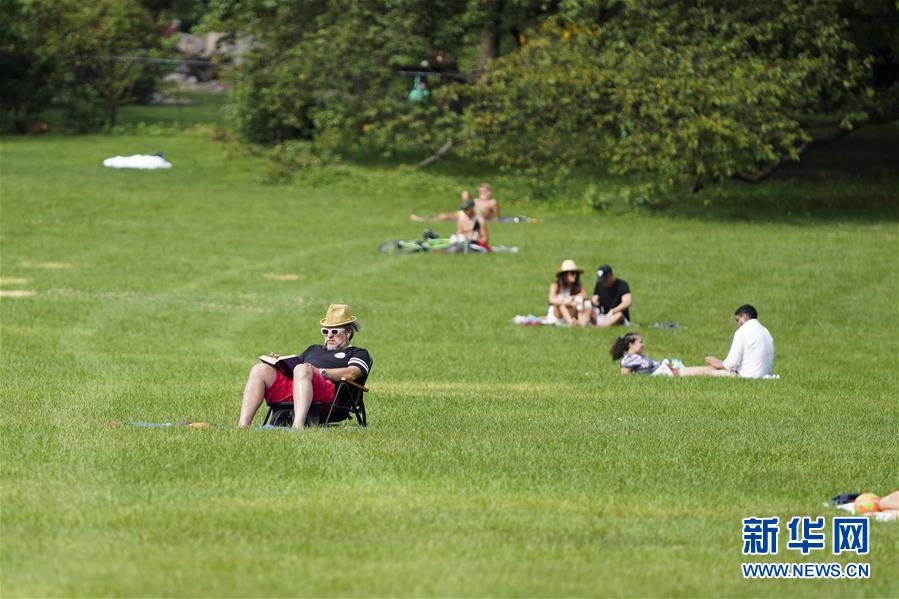 8月26日,人们在美国纽约中央公园的草坪上休闲。 新华社记者 王迎 摄
