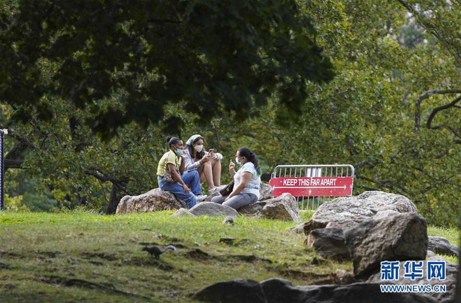 8月26日,人们在美国纽约中央公园游玩。 新华社记者 王迎 摄