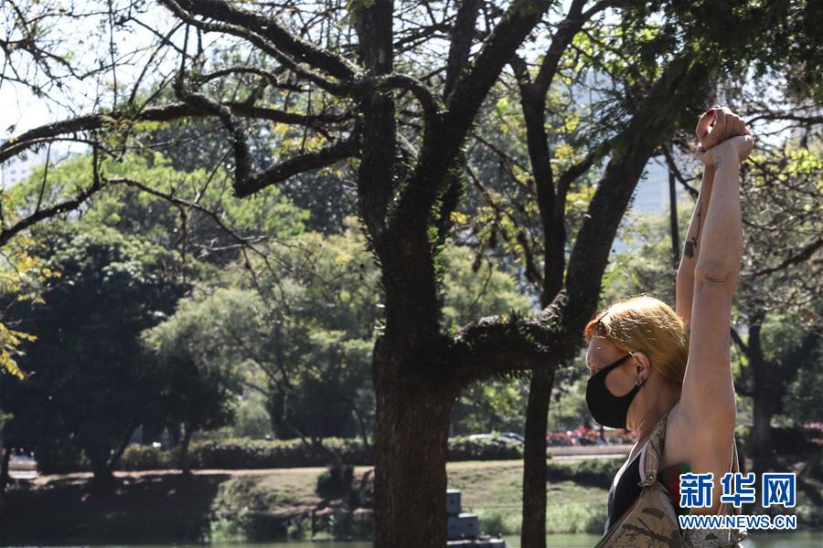 8月26日,一名女子在巴西圣保罗市一家公园内锻炼。 据巴西卫生部26日下午公布的新冠疫情数据,巴西24小时内新增确诊病例47161例,累计确诊3717156例;新增死亡病例1085例,累计死亡117665例;累计治愈病例2908848例。 新华社发(拉赫尔·帕特拉索摄)