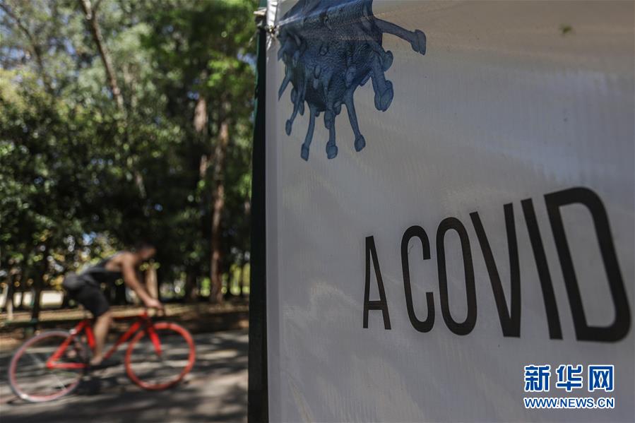 8月26日,在巴西圣保罗市一家公园,一名男子骑车经过写有“冠状病毒”字样的横幅。 据巴西卫生部26日下午公布的新冠疫情数据,巴西24小时内新增确诊病例47161例,累计确诊3717156例;新增死亡病例1085例,累计死亡117665例;累计治愈病例2908848例。 新华社发(拉赫尔·帕特拉索摄)