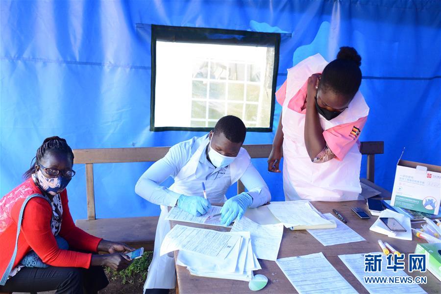 8月27日,医护人员在乌干达首都坎帕拉的一个卫生中心内做新冠病毒检测采样前的信息登记。 新华社发(尼古拉斯·卡乔巴摄)