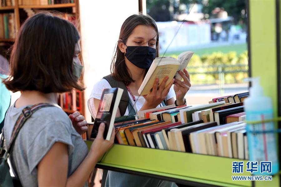 8月27日,在葡萄牙里斯本爱德华七世公园举行的第90届里斯本书展上,人们选购图书。 受新冠疫情影响,原定于5月开幕的第90届里斯本书展推迟至8月27日在里斯本市中心爱德华七世公园开幕,本次书展将持续至9月13日。 新华社发(佩德罗·菲乌萨摄)