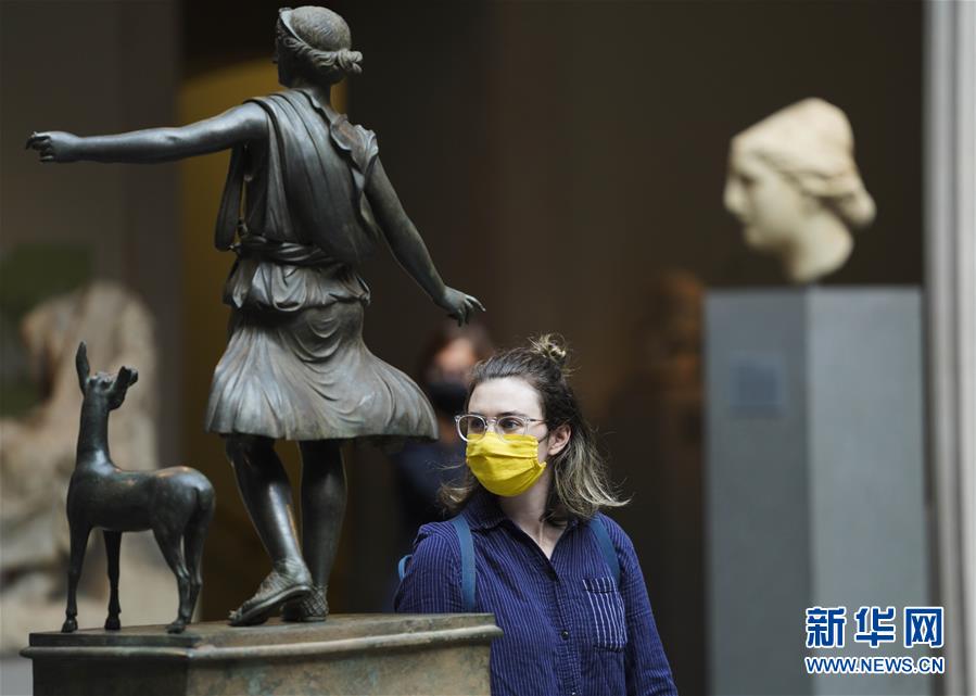 8月27日,一名女子在美国纽约大都会艺术博物馆第五大道主馆参观。 当日,受新冠疫情影响关闭5个多月的纽约大都会艺术博物馆第五大道主馆对会员重新开放,并将于29日起正式对公众开放。重新开放后,大都会艺术博物馆采取多项措施防控新冠病毒,包括限制参观人数、强制戴口罩、测量体温等。 新华社记者王迎摄