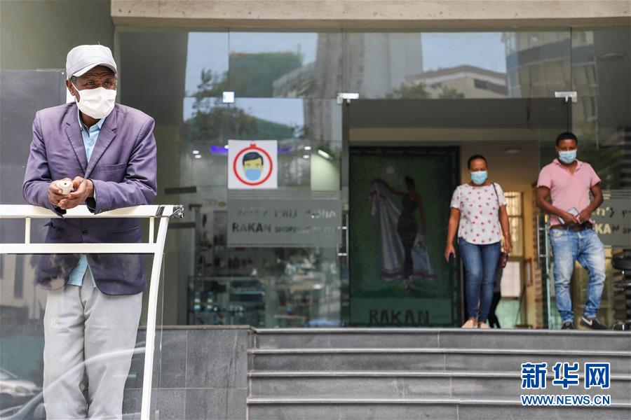 8月27日,人们戴着口罩走出埃塞俄比亚首都亚的斯亚贝巴的一家商场。 据埃塞俄比亚卫生部27日发布的数据显示,该国新增新冠确诊病例1186例,累计新冠确诊病例达46407例。新华社发(迈克尔·特韦尔德摄)