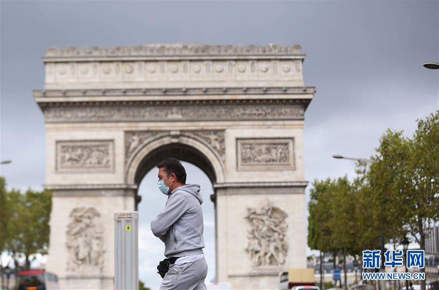 8月28日上午,一名男子戴口罩走在法国巴黎香榭丽舍大街。 新华社记者 高静 摄