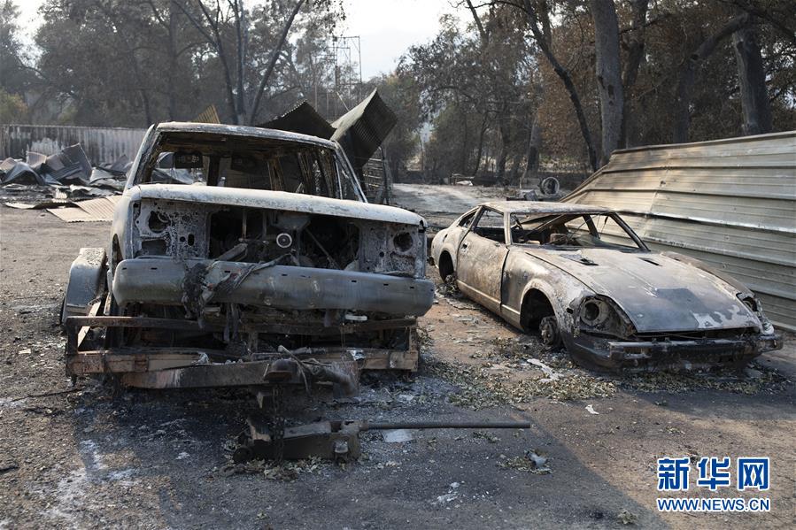 8月28日,在美国加利福尼亚州索拉诺县瓦卡维尔,汽车被山火烧毁。 美国加利福尼亚州北部山火持续燃烧。截至28日,旧金山湾区附近的三处最大火场面积已达83万英亩(约合3359平方公里),其中不到40%的面积得到控制。 新华社发(李建国摄)