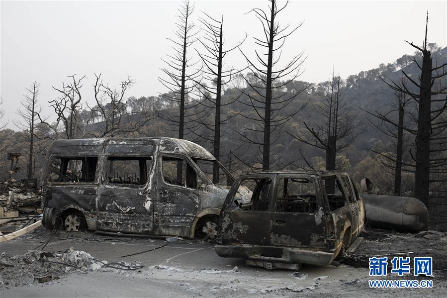 8月28日,在美国加利福尼亚州索拉诺县瓦卡维尔,汽车被山火烧毁。 美国加利福尼亚州北部山火持续燃烧。截至28日,旧金山湾区附近的三处最大火场面积已达83万英亩(约合3359平方公里),其中不到40%的面积得到控制。 新华社发(李建国摄)