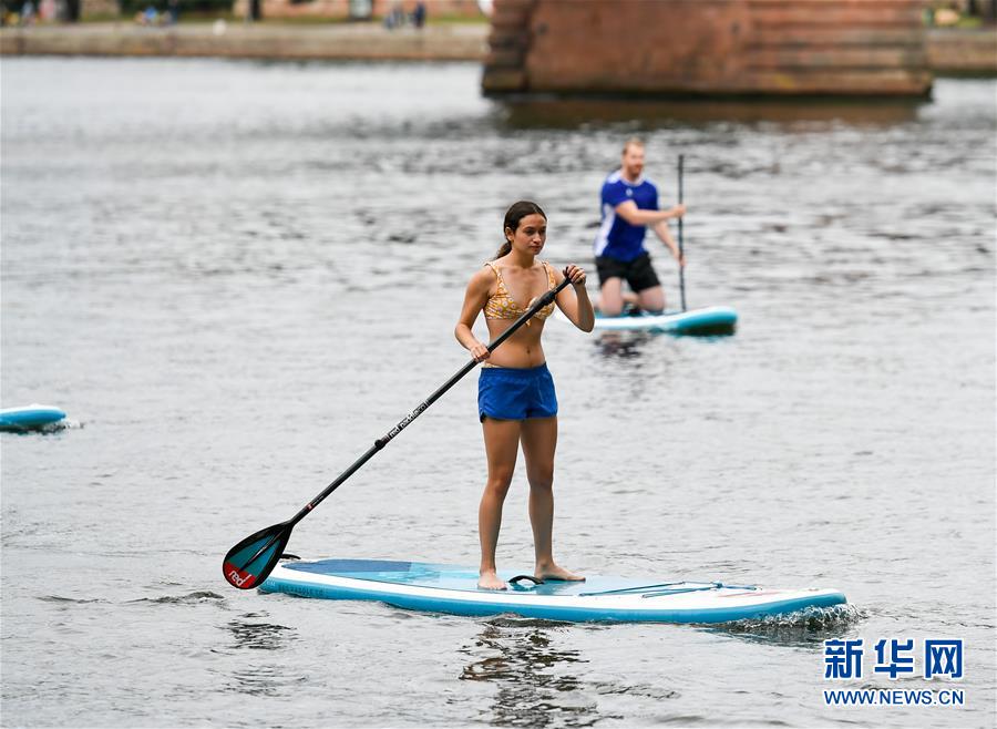 8月29日,站立式划水爱好者在德国法兰克福美因河上练习。 当天,在德国法兰克福市,不少站立式划水爱好者来到美因河上休闲娱乐度周末。 新华社记者 逯阳 摄