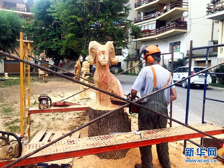 8月26日,工人在西班牙埃斯特里-德阿内乌小镇制作木雕。 西班牙的埃斯特里-德阿内乌小镇正在修建一条由树木制成的木制雕塑小径,用以促进旅游业复苏和节省资金。选取制作雕塑的树木均为可能在大雪天气对居民出行造成潜在危险的树木。 新华社发(伊斯梅尔·佩拉科拉摄)
