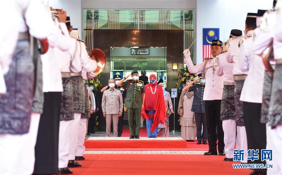 8月31日,在马来西亚普特拉贾亚,马来西亚最高元首阿卜杜拉(中)出席马来西亚独立63周年庆典活动。 新华社发(马来西亚新闻局供图)