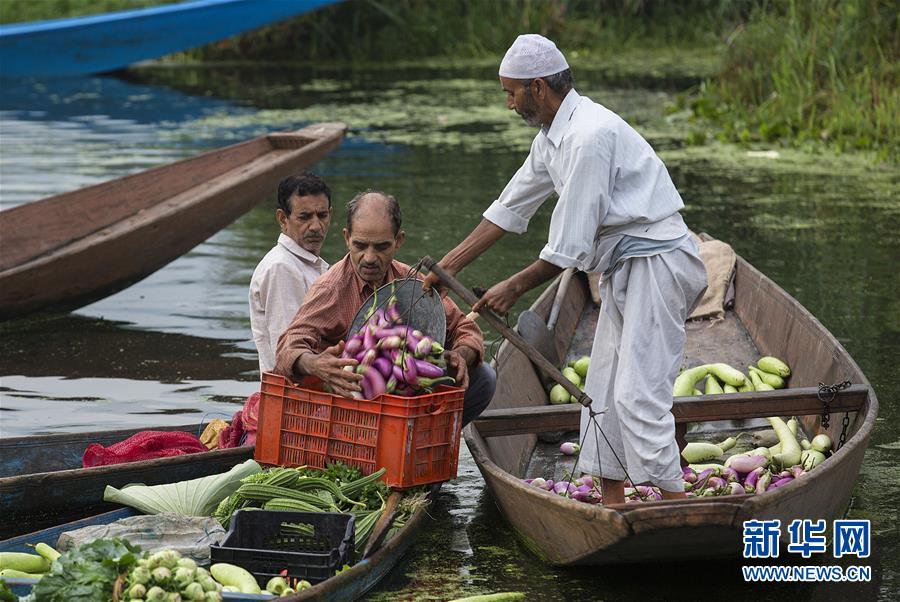 9月1日,人们在印控克什米尔斯利那加的水上蔬菜市场交易。 新华社发(贾维德·达尔摄)