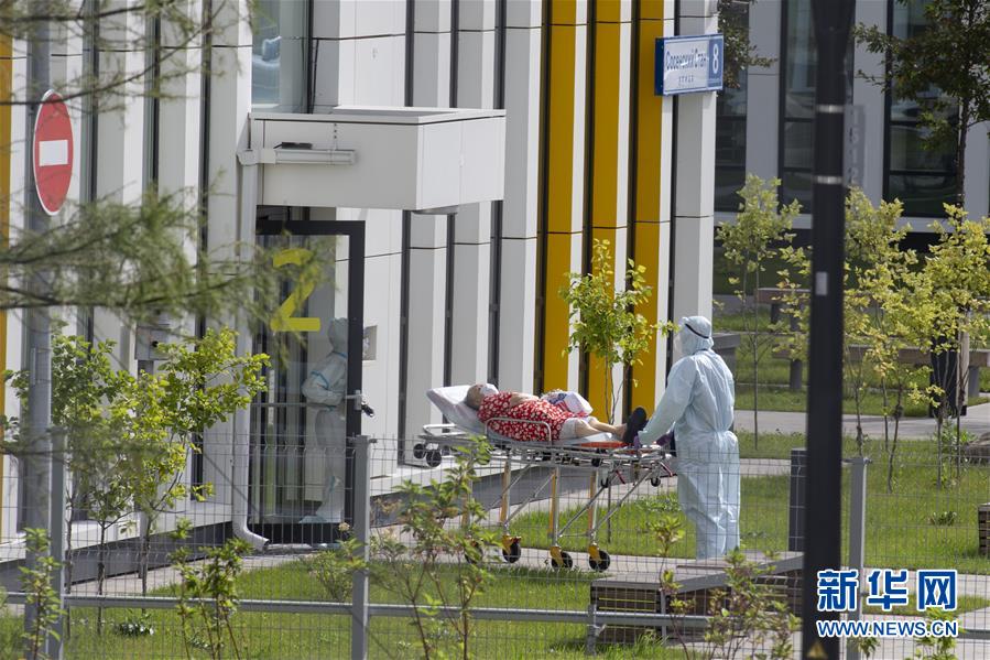 9月1日,在位于俄罗斯首都莫斯科市郊科穆纳尔卡的医院,医护人员转移一名患者。 俄罗斯累计新冠确诊病例1日突破100万例。随着新学年开始,俄政府对学校疫情防控做出了规定。 新华社发(亚历山大 摄)