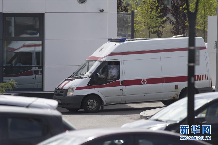 这是9月1日在俄罗斯首都莫斯科市郊科穆纳尔卡医院附近拍摄的救护车。 俄罗斯累计新冠确诊病例1日突破100万例。随着新学年开始,俄政府对学校疫情防控做出了规定。 新华社发(亚历山大 摄)