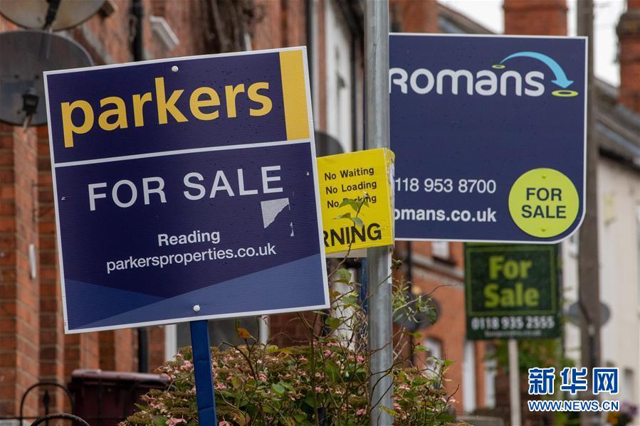 这是9月2日在英国雷丁拍摄的房产中介广告。 英国全国建房互助会2日发布的最新调查结果显示,随着封锁措施的放松和市场交易的活跃,8月份英国房屋平均价格出现快速反弹,同比增长3.7%。 新华社发(蒂姆·爱尔兰摄)