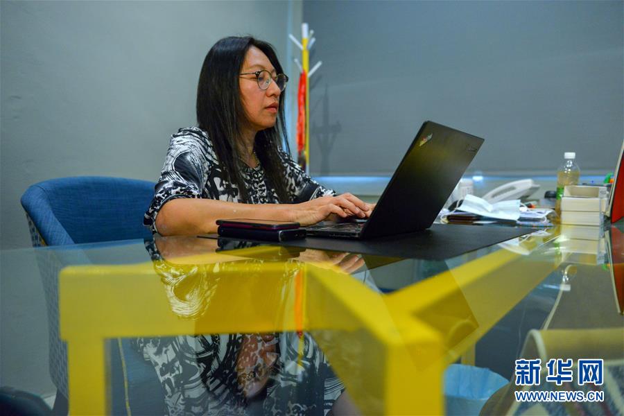 9月2日,在马来西亚吉隆坡,马来西亚入境旅游协会署理会长梁伟虹在办公室工作。 新华社发(张纹综摄)