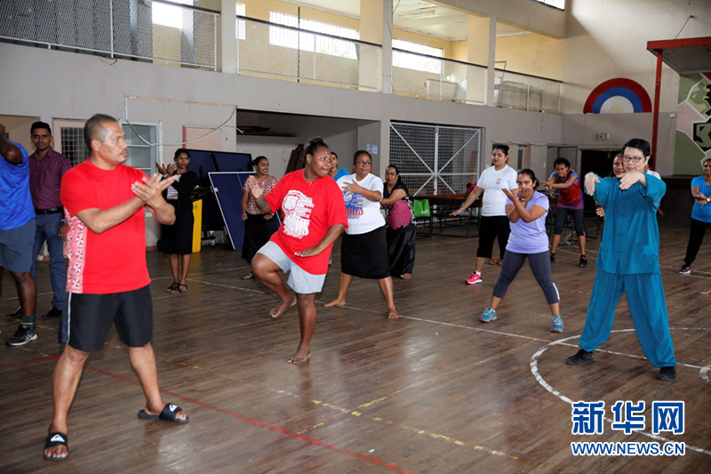 斐济老师们在认真模仿学习太极拳。(记者 张永兴 摄)
