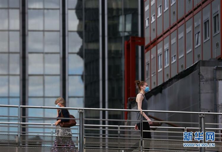 9月3日,人们戴口罩走在法国巴黎西北部的拉德芳斯商务区。 法国政府3日宣布,推出总额约1000亿欧元的经济重振计划,以应对新冠疫情蔓延给法国经济带来的挑战。 新华社记者 高静 摄