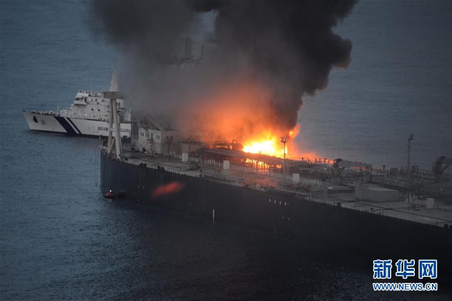 9月3日,在斯里兰卡以东海域,“新钻石”号油轮火光冲天。 斯里兰卡海军发言人德席尔瓦4日证实,一艘载有超过20万吨原油的油轮3日凌晨在斯里兰卡以东海域起火,大火4日仍未被扑灭。根据从船员那里得到的信息,大火已造成一名船员死亡,另有一人受伤。这艘名为“新钻石”号的油轮计划从科威特驶往位于印度东部的帕拉迪布港,3日凌晨行驶至距斯里兰卡东海岸38公里处时着火。 新华社发(斯里兰卡空军供图)