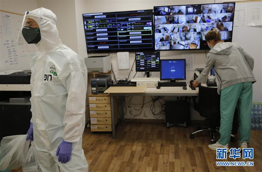 9月3日,医务人员在位于以色列中部城市特拉维夫的苏拉斯基医疗中心的新冠治疗科室工作。 以色列卫生部3日报告新增确诊病例2991例,再创单日新增最高纪录。卫生部数据显示,截至当晚,累计确诊124455例,累计死亡985例。以色列政府决定于7日正式对一些疫情较严重的城市实施封锁。 新华社发(吉尔·科恩·马根摄)