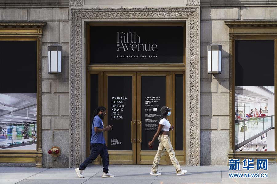 9月4日,行人从美国纽约一家招租的店铺前走过。 美国劳工部4日公布的数据显示,8月美国失业率环比下降1.8个百分点至8.4%,非农业部门新增就业人口140万人,显示在经济缓慢复苏下就业市场有所改善,但仍不及新冠疫情前水平。 新华社记者 王迎 摄