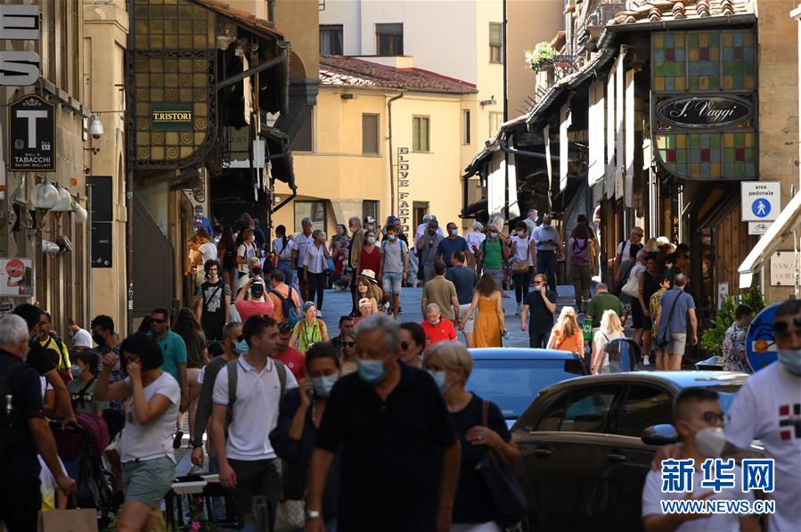 9月4日,人们走在意大利佛罗伦萨的老桥上。 近期意大利新冠病毒感染人数呈上升趋势。意大利卫生部4日公布的新冠疫情数据显示,该国当日新增确诊病例1733例,累计确诊达274644例。 新华社发(阿尔贝托·林格利亚摄)