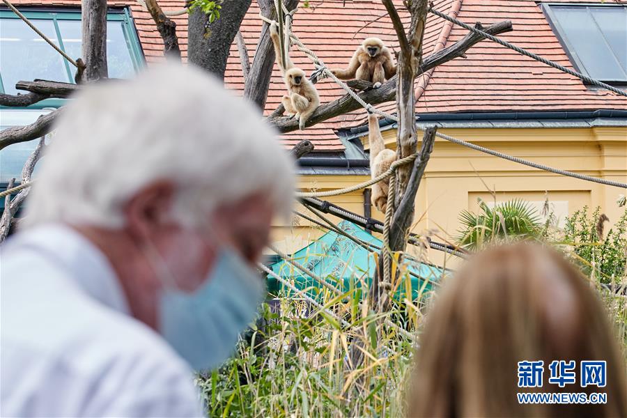 9月4日,人们在奥地利维也纳美泉宫动物园观看白掌长臂猿。 美泉宫动物园位于世界文化遗产美泉宫景区内,从5月中旬重新对公众开放后,吸引不少游客前来参观。 新华社发(乔治斯·施耐德摄)