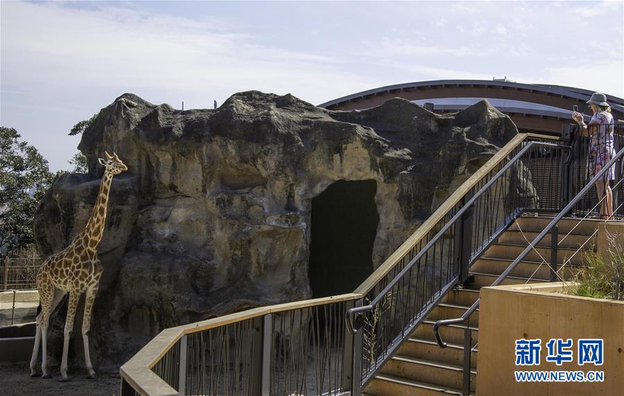 9月3日,一名游客在澳大利亚悉尼一家动物园内拍摄长颈鹿。 近期,随着澳大利亚新冠疫情逐步得到控制,悉尼多家动物园恢复营业。 新华社发(胡泾辰摄)