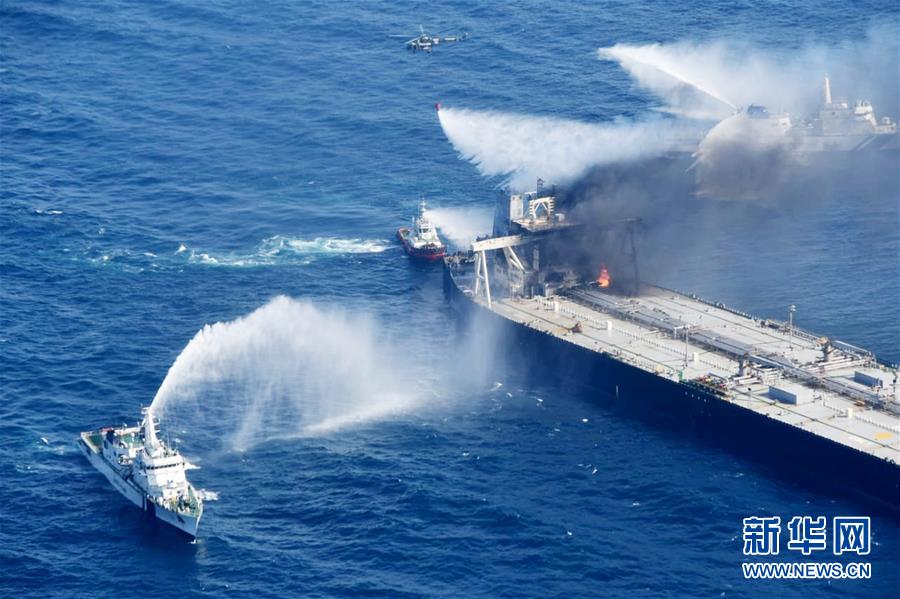 载有超过20万吨原油的油轮“新钻石”号3日凌晨在斯里兰卡以东海域起火。根据斯里兰卡海军9月5日发布的声明,目前油轮火势已经得到控制。 新华社发(斯里兰卡空军供图)