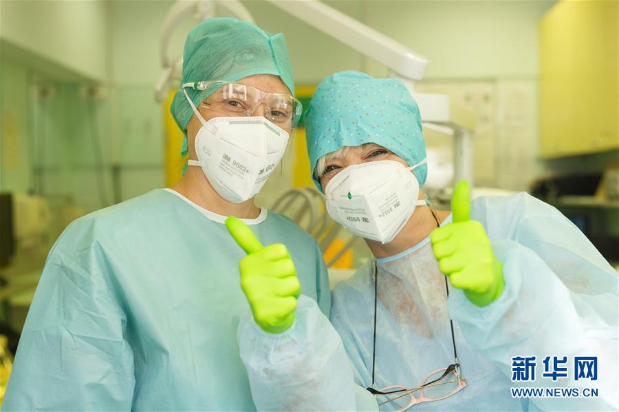 9月4日,斯洛文尼亚卢布尔雅那社区卫生中心牙科门诊的两名医生合影。 为防范新冠疫情,斯洛文尼亚卢布尔雅那社区卫生中心的牙科门诊在患者就医前通过电话和电子邮件加强沟通,询问新冠病毒相关问题,以确定患者的健康情况;在患者就诊结束后,门诊会对所有器械和设备进行消毒和杀菌处理。 新华社发(泽利科·斯特凡尼奇摄)