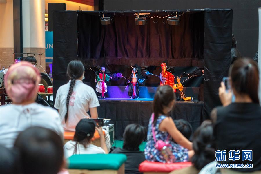 9月6日,人们在马来西亚吉隆坡一家商场内观看潮州木偶剧表演。 新华社发(张纹综摄)