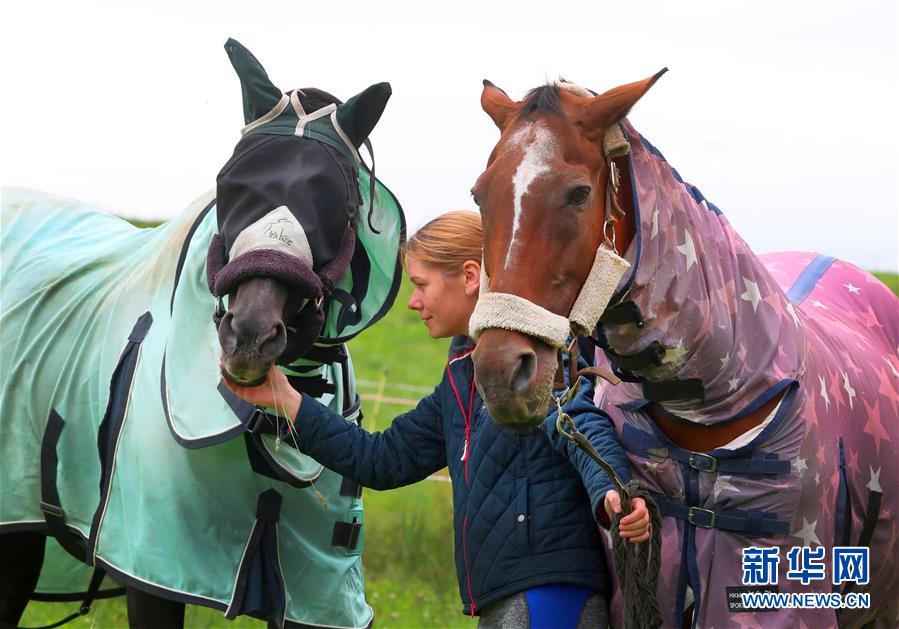 9月6日,在白俄罗斯首都明斯克郊区一处牧场,志愿者照顾退役赛马。 新华社发(任科夫摄)