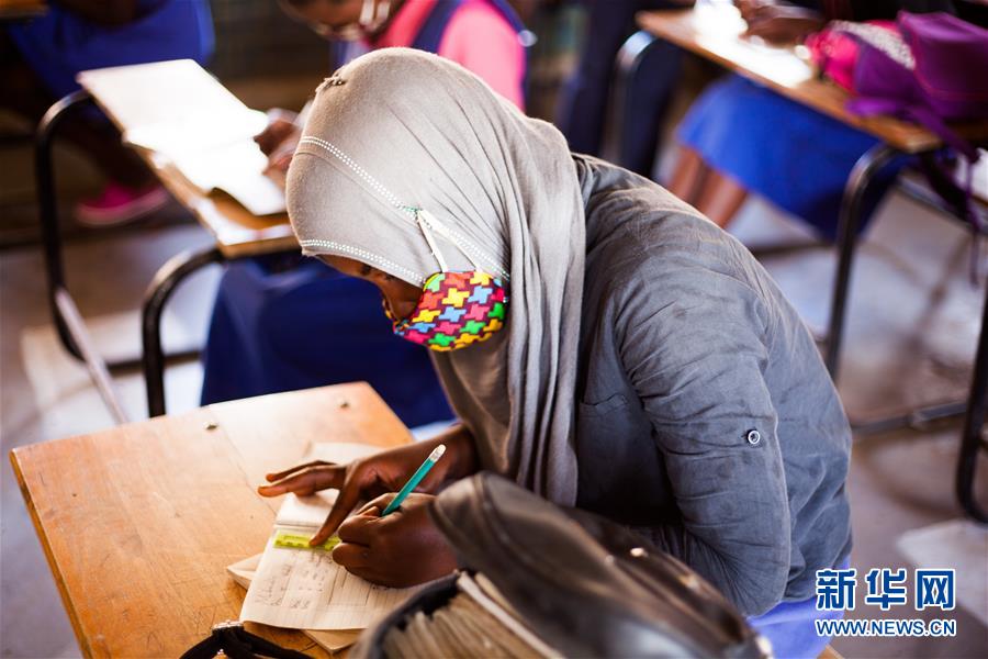 9月7日,在马拉维布兰太尔,一名学生佩戴口罩在教室内学习。新华社发(约瑟夫 摄)