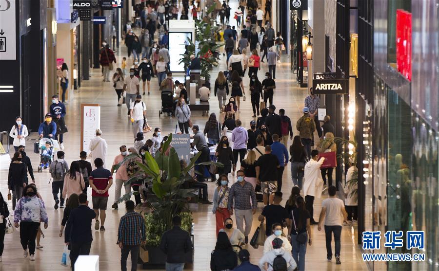 9月8日,人们在加拿大安大略省多伦多一家购物中心购物。 安大略省当日宣布,将暂停该省进一步放松疫情管控措施,暂停时间为期四周。 新华社发(邹峥摄)