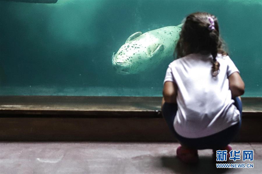 9月8日,一名小女孩在巴西圣保罗市水族馆里观看海洋动物。 在因新冠疫情关闭约半年后,巴西圣保罗市水族馆于9月5日重新开放。 新华社发(拉赫尔·帕特拉索摄)