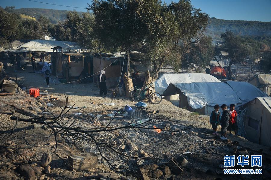 这是9月9日在希腊莱斯沃斯岛拍摄的火灾过后的莫里亚难民营。 据雅典-马其顿通讯社报道,位于莱斯沃斯岛的希腊最大难民营莫里亚难民营9日凌晨发生火灾,数以千计的难民和非法移民逃离,目前火势已得到控制,但尚无人员伤亡报告。 新华社发(帕纳吉奥提斯·帕拉斯卡斯摄)
