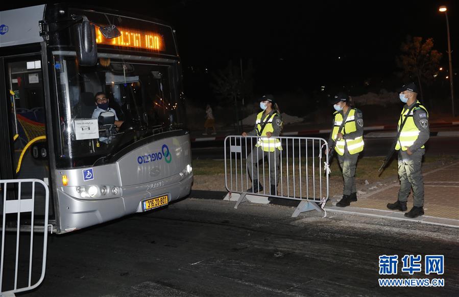 这是9月8日在以色列中部城市贝特谢梅什拍摄的执行宵禁封锁任务的警察。 以色列从8日晚起对该国40个疫情严重的城市和社区实行宵禁,宵禁时间为晚7时至翌日凌晨5时。在此期间,这些城市和社区的非基本服务将关闭,民众不可离家超过500米。宵禁政策将持续到9月15日。 新华社发(吉尔·科恩·马根摄)