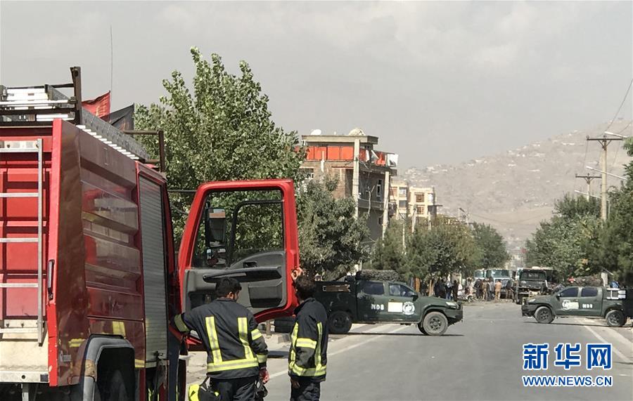 9月9日,消防员在阿富汗首都喀布尔的袭击现场附近工作。 阿富汗首都喀布尔9日发生针对第一副总统阿姆鲁拉·萨利赫车队的爆炸袭击,造成10名平民死亡。萨利赫本人受轻伤。 新华社发(拉赫马图拉·阿里扎达 摄)